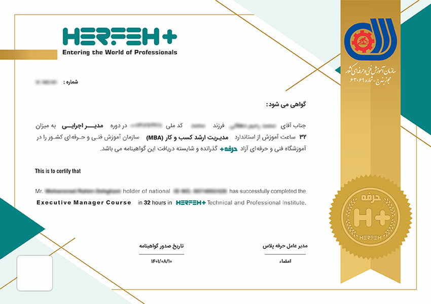 پس از گذراندن دوره مدیریت اجرایی حرفه پلاس: