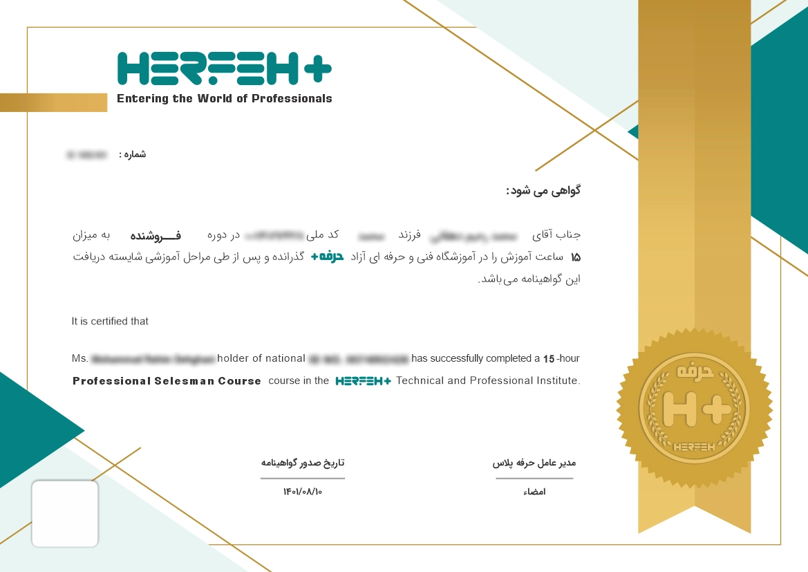 پس از گذراندن دوره فروشنده حرفه ای حرفه پلاس