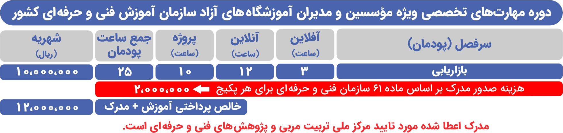 • آموزش ها تخصصی برای موسسین آموزشگاه های آزاد طراحی شده است